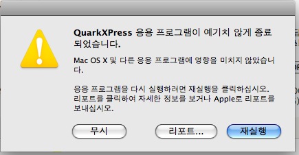 안녕하세요? 박노훈입니다. 지금 사용 중인 QuarkXPress의 버전이 8이므로 아래의 내용을 참조하시어 조치를 취해준 후에 재설치를 해보시기 바랍니다. http://www.iplace.co.kr/bbs/zboard.php?id=hoon&page=1&page_num=15&select_arrange=headnum&desc=&sn=off&ss=on&sc=on&keyword=&no=289&category=7 지금의 경우와는 일부 상황이 다르기는 하지만 도움이 되는 답글이길 바랍니다. 감사합니다. http://iplace.co.kr